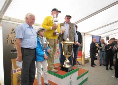 Sieg für das Team-Sylt-2000 mit einer Taube von Erhard und Doris Goebel-Varney und 2. As-Taube für das Team-Sylt-2000 mit einer Taube von Harry Gerrits! Sehr geehrte Sportfreunde, am ersten Septemberwochenende wurde die One-Loft-Races Saison 2010 mit mehreren Finalflügen fortgesetzt. Erneut setzten sich Tauben aus unserem Team an die Spitze der Preislisten. Beim Finalflug des Holstein-Derbys 2010 musste die für unser Team fliegende Taube von Wilhelm und Jens Rehm sich um nur wenige Hundertstelsekunden geschlagen geben. Beim Finalflug zum MVL-Cup 2010 setzte sich unsere Teamtaube-Nr.: 00334-10-138 von Erhard und Doris Goebel-Varney durch und errang in ihrer Anwesenheit den 1. Preis. Nach einer anspruchsvollen Vorbereitungsphase wurden zum Endflug ab Göttingen (393 km) 661 Tauben, die um 260 Geldpreise flogen, eingesetzt. Um 08:15 Uhr erfolgte der Auflass bei nordwestlichem Wind. Auf ihrem Heimflug hatten die Tauben ab Soltau nordöstlichen Wind, also Kopfwind. Am Taubenschlag erwarteten über 600 Züchter, unter ihnen auch zahlreiche Sportfreunde unseres Teams, die Ankunft der Tauben. Besondere Spannung gab es für unsere Sportfreunde, weil eine Teamtaube von Harry Gerrits die As-Tauben Wertung anführte und sich noch drei Teamtauben im Knock-Out Wettbewerb befanden. 15 Teamtauben und 13 private Tauben wurden von unseren Sportfreunden am Schlag erwartet. Unsere Sportfreunde mussten sich bis 15:10 Uhr gedulden. Eine Flugzeit von knapp sieben Stunden, als die ersten Tauben am Schlag eintrafen. Ein echter Tribünenflug, wo sich nur die besten Tauben platzieren. Gegen die Übermacht der nordischen Tauben setzte sich schlussendlich unsere Teamtaube Ring- Nr.: 00334-10-138, dem Team von Erhard und Doris Goebel-Varney zur Verfügung gestellt, durch. Sie ging um 15:10 Uhr mit einer Fluggeschwindigkeit von 998 m/Min. über die Antenne. Den 2. Preis errang um 15:11 Uhr die dänische Taube Ring- Nr.: 70-10-01335 vom Team Kakadu aus Aabenraa. Diese Sportfreunde siegten auch mit ihrer Taube Ring- Nr.: 70-10-01118 im Knock-Out Wettbewerb. Um 15:14 Uhr wurde die 3. Preistaube N-10-10986, gestartet für den norwegischen Verbandspräsidenten Frode Brakstad, registriert. Bis zum Abend trafen 184 Preistauben in lockerer Folge ein. Die Ehrung der Sieger erfolgte schon kurz nach dem Eintreffen der Tauben. Und auch die ersten Preistauben wurden versteigert, wobei die Siegertaube das höchste Gebot erreichte. Erhard Goebel-Varney und Engelbert Heun auf dem Siegerpodest. Neben dem ansehnlichen Preisgeld wurde noch ein Pokal von über 100 cm Höhe überreicht. Bis zum Abend war nur über den 1. Preis in der As-Tauben Wertung entschieden worden. Die Taube Ring- Nr.: B-10-6183292 von Victor und Jef de Wilder machte den 120. Preis und war nicht mehr zu schlagen. Am Sonntagmorgen um 11:47 Uhr traf dann endlich unsere Hoffnung in der As-Tauben Wertung ein. Unsere Teamtaube Ring- Nr.: 06510-10-2417, dem Team von Harry Gerrits zur Verfügung gestellt, machte den 231. Preis und wurde mit diesem Erfolg 2. As-Taube des diesjährigen MVL-Cup. Ein starkes Ergebnis erzielten wir mit unseren Teamtauben. Sieben Teamtauben platzierten sich in den Preisen. Von den Privattauben errangen zwei Tauben einen Preis.